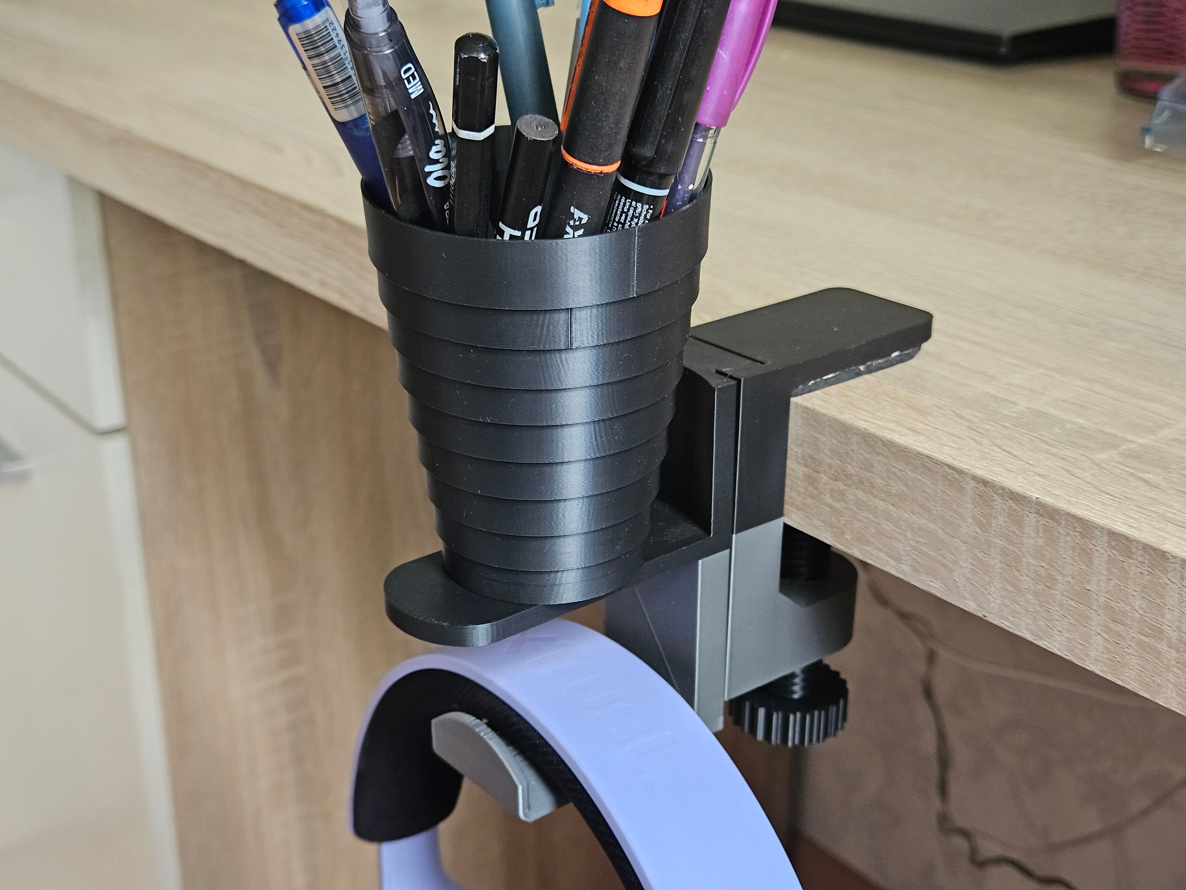 Can hold multiple items and easily attaches to any desk